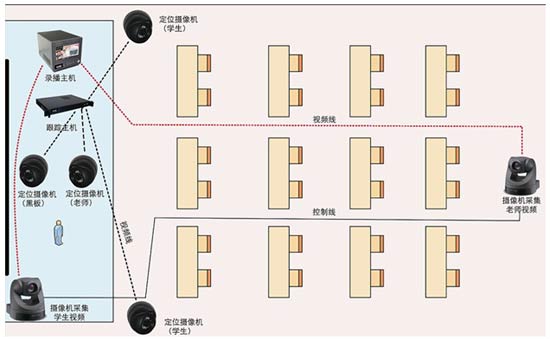 錄播教室就是在學校的教室安裝攝像機,通過攝像機多方位對精品課程和重要會議等采集信號錄制到計算機硬盤中,學生或者老師可以從不同的攝像機視角觀看錄像文件。同時,也可以對網(wǎng)上的信息源進行整理上傳,達到充分利用網(wǎng)絡(luò)學習資源的目的。