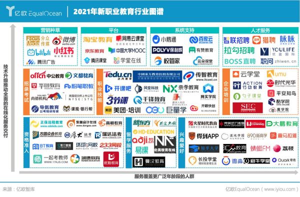 毫無疑問,新職業(yè)教育正迎來新的風口。 2021年職業(yè)教育政策頻發(fā),這既是職業(yè)教育改革的進一步推進,亦是新的社會經(jīng)濟環(huán)境使然。 隨著社會經(jīng)濟、技術的高速發(fā)展和社會分工的精細化,在更多行業(yè)縱向深入發(fā)展的同時催生了很多新行業(yè),新職業(yè)、新崗位應運而生,以就業(yè)為導向的職業(yè)教育也成為越來越多職場人的核心需求。 與傳統(tǒng)職業(yè)教育不同的是,新職業(yè)教育在新的時代背景下呈現(xiàn)出三方面的變化:在教學內(nèi)容上,已經(jīng)從提升職場硬實力延伸為泛職業(yè)軟技能的培訓,除了工作技能的提升還包括興趣愛好等具有社交功能的培訓;在教學形式上,直播、短視頻等新技術加入使得優(yōu)質(zhì)內(nèi)容的傳播更加高效,基于教學空間的延伸,優(yōu)質(zhì)教學內(nèi)容能覆蓋更多的學習者;在目標人群上,隨著退休年齡的延長,新職業(yè)教育也逐步覆蓋到16-60歲更為廣泛的職場人群。 億歐智庫發(fā)布《2021新職業(yè)教育行業(yè)發(fā)展研究報告》,報告旨在呈現(xiàn)職業(yè)教育在如今發(fā)展環(huán)境下的發(fā)展新形態(tài),并探析新職業(yè)教育的未來趨勢和發(fā)展前景,為更多謀求職業(yè)精細規(guī)劃的泛職場人群明晰新職業(yè)教育發(fā)展的動向和趨勢。