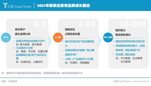 結(jié)合新職業(yè)教育適應性、在線化、終身化的三大特征,新職業(yè)教育在供給側(cè)人崗高度適配的服務仍然存在優(yōu)化的空間。 第二,新職業(yè)教育的創(chuàng)新和發(fā)展最終還是企業(yè)組織能力的比拼。新職業(yè)教育品牌都會經(jīng)過建立品牌認知、占領品類未知和穩(wěn)定營收增長凸顯組織能力三個階段。
