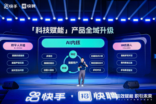 持續(xù)加碼智能化 鑄造全域雙引擎 不僅是“311”計(jì)劃,快聘2024年也在持續(xù)發(fā)力AI,通過AI能力內(nèi)核進(jìn)行產(chǎn)品創(chuàng)新,全面賦能商家。一方面,快聘利用快手大模型搭建了AI智能機(jī)器人,實(shí)現(xiàn)智能的功能對(duì)話、求職意向的精準(zhǔn)過濾、多場(chǎng)景的留資。另一方面,快聘推出的數(shù)字人直播,實(shí)現(xiàn)高真實(shí)感的建模、音視頻的同步以及實(shí)時(shí)的問答與互動(dòng)。