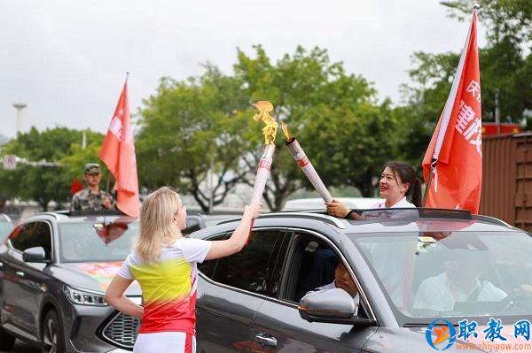 火炬?zhèn)鬟f活動。重慶信息技術(shù)職業(yè)學(xué)院供圖 10月1日,“返校護(hù)照·重信校園開放日”讓校友們手持“護(hù)照”重溫青春記憶;校友會總會2025年會的召開,則為全球校友構(gòu)建起一個(gè)情誼聯(lián)結(jié)與資源共享的堅(jiān)實(shí)平臺。當(dāng)夜幕降臨,煙火地?cái)偧?、千人烤魚宴、集體生日會與“飛火銀花重信秀”等環(huán)節(jié)接連上演,為所有參與者呈現(xiàn)了一場融匯傳統(tǒng)風(fēng)情與現(xiàn)代創(chuàng)意的校園慶典盛宴。