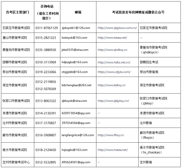 九、各考區(qū)網(wǎng)址、微信公眾號(hào)及咨詢電話