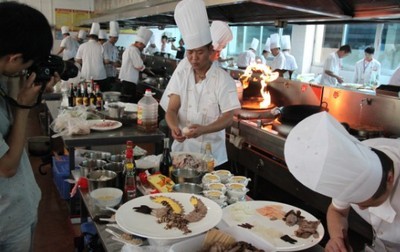 2、技能學習:烹飪基本功(包含刀工、勺工)、中餐烹調(diào)常用的炒、爆、熘、扒、燒、燴等30種烹調(diào)方法,主要涉及熱菜80個品種,涼菜45個品種,冷拼基 本功及高檔花色拼盤6個品種,可參與第二課堂學習雕刻技術(shù)等其它選修課技能。