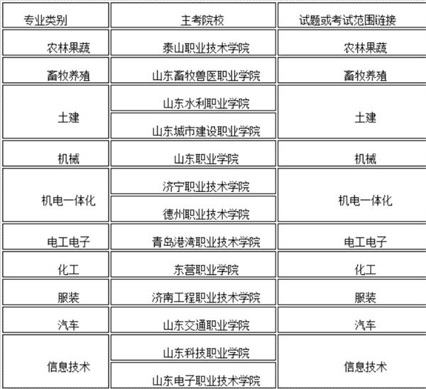 根據(jù)今年山東省省春季高考相關(guān)工作安排,各主考院校近期將陸續(xù)公布技能考試試題或考試范圍。為方便考生查詢,現(xiàn)在提供各專業(yè)類別試題或考試范圍的鏈接如下: