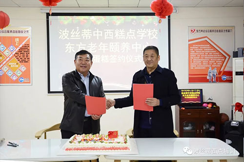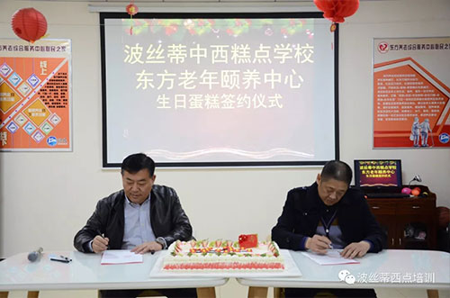 同時,波絲蒂西點培訓(xùn)學(xué)校與東方老年頤養(yǎng)中心“生日蛋糕捐贈”簽約儀式在中心一樓活動室隆重舉行,以后每月波絲蒂西點學(xué)校都會為中心過生日的老人免費制作生日蛋糕。波絲蒂西點培訓(xùn)學(xué)校校長陳紅林,東方老年頤養(yǎng)中心院長邢海東共同出席了簽約儀式。