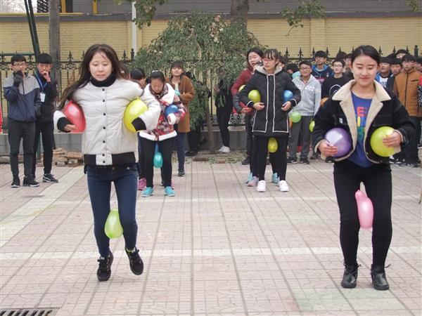 為響應(yīng)團(tuán)中央“走下網(wǎng)絡(luò)、走出宿舍、走向操場(chǎng)”三走活動(dòng)的號(hào)召。11月25日,我校趣味運(yùn)動(dòng)會(huì)在學(xué)校操場(chǎng)成功舉行。來自各班的代表隊(duì)參加了此次活動(dòng)。趣味項(xiàng)目包括:四人五足、袋鼠跳、單人、團(tuán)體跳繩等比賽。參與其中同學(xué)熱情高漲,隨著裁判員一聲令下四人五足比賽開始,各參賽小組組員緊緊綁在一起的腿同時(shí)邁出整齊而堅(jiān)定的步伐,相互扶持著向終點(diǎn)迅速前進(jìn)。觀眾們更是不亦樂乎,歡呼聲加油聲不時(shí)傳出。場(chǎng)面非常熱烈而有秩序,這充分體現(xiàn)了我校學(xué)生的精神面貌和自身素質(zhì)。經(jīng)過激烈的比拼:測(cè)繪29班班成為最大贏家獲得團(tuán)體第一名。