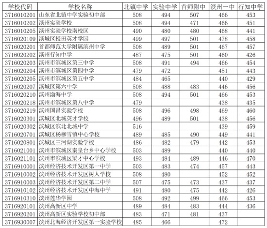 2022年濱州市城區(qū)普通高中學校