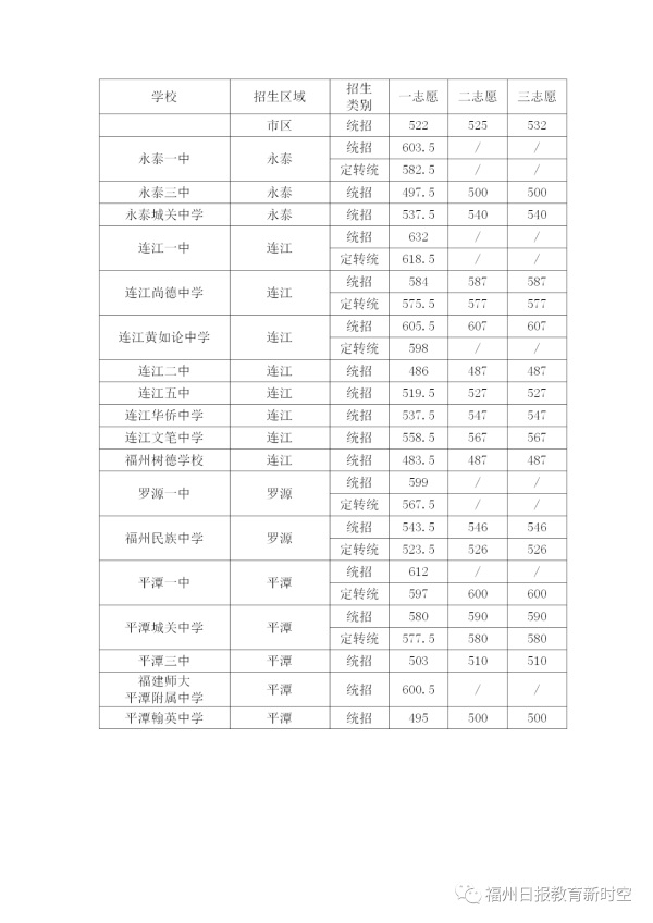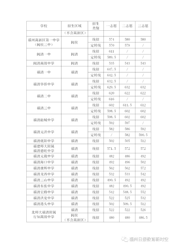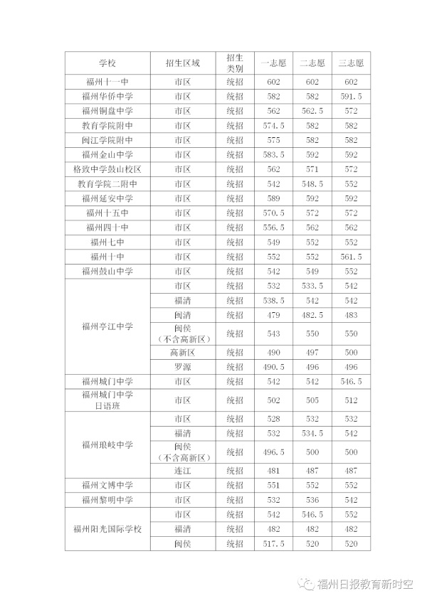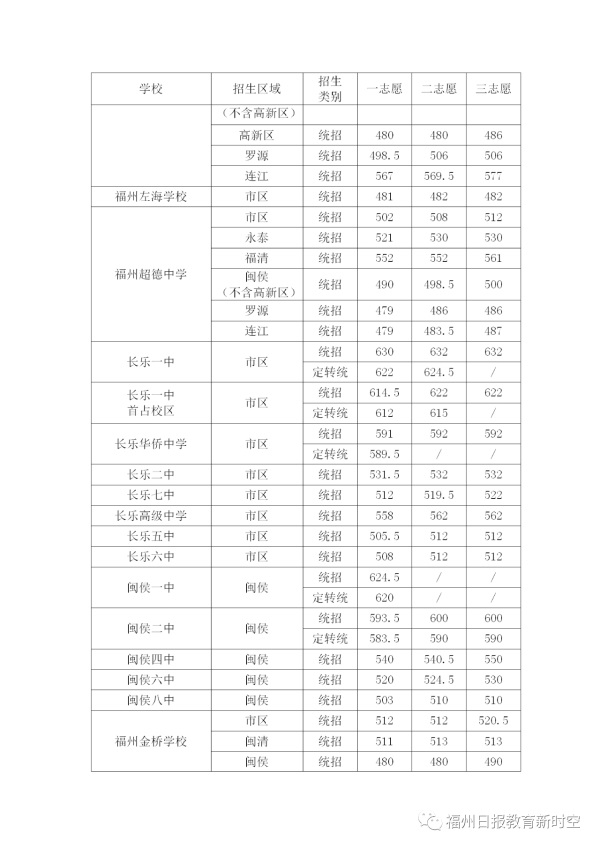 2020年福建福州中考普高學(xué)校最低錄取分?jǐn)?shù)線公布