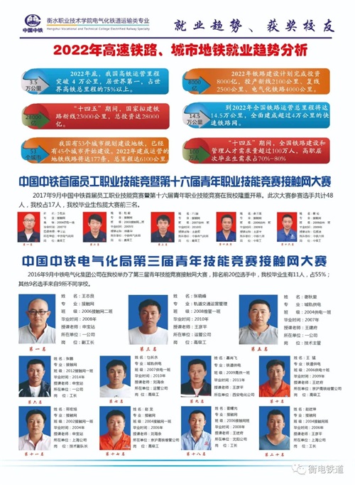衡水職業(yè)技術(shù)學(xué)院電氣化鐵道運(yùn)輸類專業(yè)是學(xué)院與中國中鐵深入校企合作、產(chǎn)教融合共建特色專業(yè),打造鐵路和軌道交通行業(yè)“文化素質(zhì)+職業(yè)技能”的新型大學(xué)生人才培養(yǎng)模式,是全國鐵路企業(yè)舉辦的電氣化鐵道運(yùn)輸類專業(yè)的國家級(jí)重點(diǎn)職業(yè)院校,是國家電氣化鐵道運(yùn)輸類和地鐵行業(yè)后備力量的主要來源,是中國電氣化鐵道運(yùn)輸類高技能人才培養(yǎng)基地。學(xué)院下設(shè)"鐵道供電技術(shù)”、“鐵道信號(hào)自動(dòng)控制"、城市軌道交通運(yùn)營管理"、“鐵道機(jī)車運(yùn)用與維護(hù)”專業(yè),具備了全日制大專學(xué)生的培養(yǎng)資格,打造鐵路及軌道交通行業(yè)"文化素質(zhì)+職業(yè)技能"的新型大學(xué)生人才培養(yǎng)模式,突出   "應(yīng)用"  與  "技能"兩個(gè)特點(diǎn),在提高大學(xué)生文化素質(zhì)的基礎(chǔ)上,運(yùn)用學(xué)校雄厚師資和全真鐵路"四電"及運(yùn)輸專業(yè)綜合實(shí)訓(xùn)基地開展“真刀真槍"的實(shí)訓(xùn)課程.使培養(yǎng)出來的大學(xué)生不是只懂理論知識(shí)的花瓶,而是成為I正掌握實(shí)際操作技能的優(yōu)秀者。