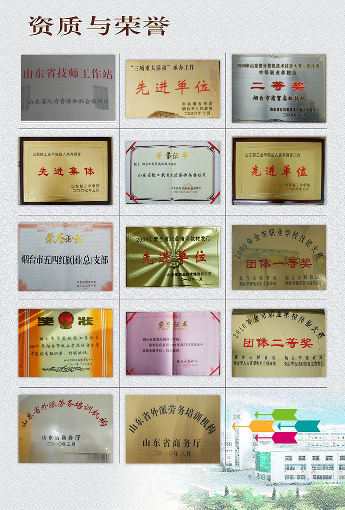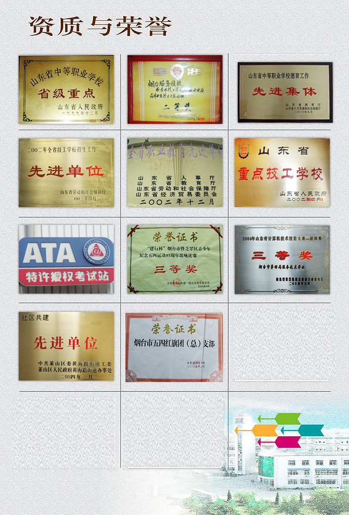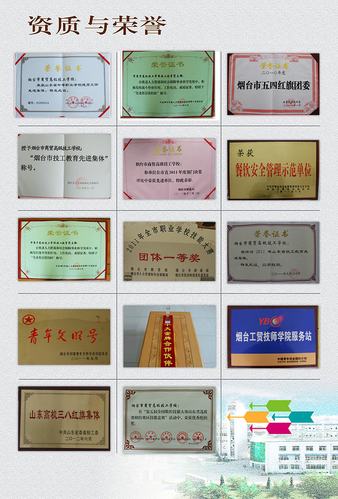 煙臺文化旅游職業(yè)學院是在煙臺工貿(mào)技師學院基礎(chǔ)上建立,全國第一所以"文化旅游"產(chǎn)業(yè)命名 的全日制職業(yè)高等學校,被授予國家級高技能人才培訓基地、國家旅游局職業(yè)教育校企合作示范基地、 山東省金藍領(lǐng)人才培訓基地、山東省全域旅游人才培訓基地、煙臺工匠孵化基地、山東省文明單位和中國魯菜學府等稱號。學院全面貫徹黨的教育方針,以立德樹人為根本,以促進就業(yè)和適應(yīng)產(chǎn)業(yè)發(fā)展需求為導向,堅持"質(zhì)量立校、特色興校、創(chuàng)新強?!钡霓k學理念,堅持"產(chǎn)教融合、校企合作”的辦學模式,培養(yǎng)適應(yīng)文化旅游新產(chǎn)業(yè)、新業(yè)態(tài)、新模式的新時代高素質(zhì)技術(shù)技能人才。 煙臺文化旅游職業(yè)學院位于“..